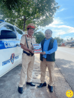 Trao tặng tạp chí Sức khỏe cộng đồng cho đồng chí Trịnh Nguyễn Thanh Tuấn – Đội trưởng đội CSGT Rạch Chiếc, Phòng CSGT đường bộ, CA TP. HCM tích cực hỗ trợ hành trình xuyên Việt vì sức khỏe công đồng.