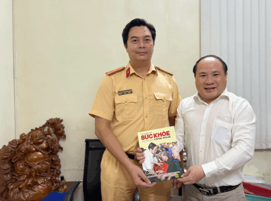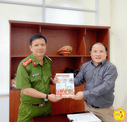 Tặng tạp chí Sức Khỏe cộng đồng cho đồng chí Đinh Văn Điện – Cán bộ tiêu biểu Phòng HDTTKSGTĐB, Cục CSGT Đường Bộ Đường Sắt, Bộ Công an.